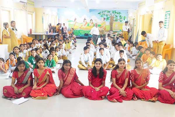 Maharshi Vidya Mandir Naini, celebrated 150th Birthday Anniversary of His Divinity Gurudev Shri Swami Brahmanand Saraswati Ji .The celebration commenced with Special Shri Guru Parampara Poojan and followed by lighting of lamp by Principal.