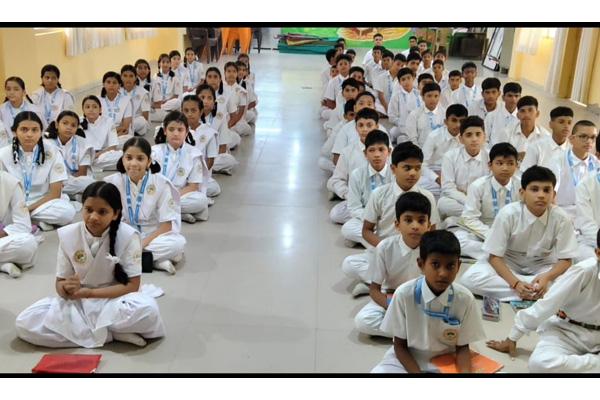Maharishi Vidya Mandir inaugurates "Oil Board" in School To curb child obesity: A step towards healthier campus, the Central Board of Secondary Education (CBSE) has asked schools to set up oil boards to educate students and staff about harmful effects of consuming high-fat food and oil, and to serve as daily reminders promoting healthier eating habits. The data points out that there is a sharp rise in obesity among both adults and children. As per National Family Health Survey (NFHS-5) 2019–2021, over one-fifth of adults in urban areas are overweight or obese. The board also made recommendations such as physical activity in schools through availability of nutrition, healthier food options and by limiting availability of high snacks and activity initiatives. Under the able guidance of our Principal Mrs. Geeta Arora, the teachers of MVM, Naini - Meera Dutta, Mrs. Shivani Yadav, Mrs. Savita Dubey monitored the students while they were conducting the activity.