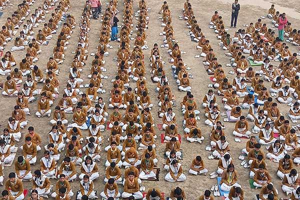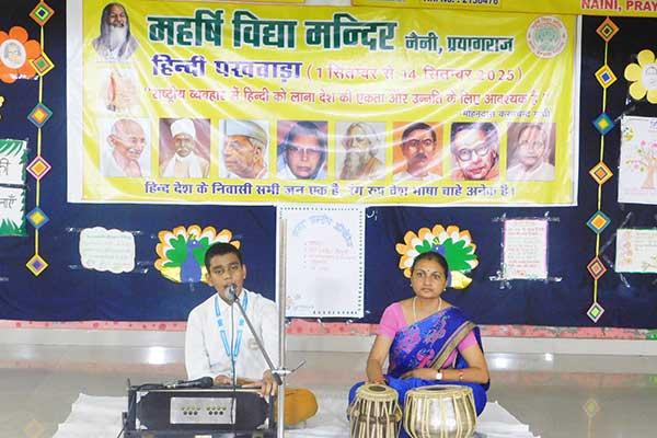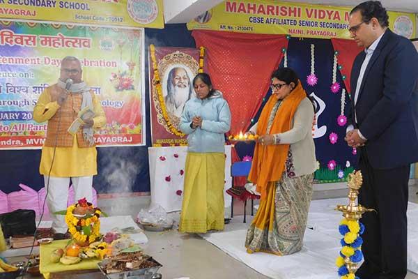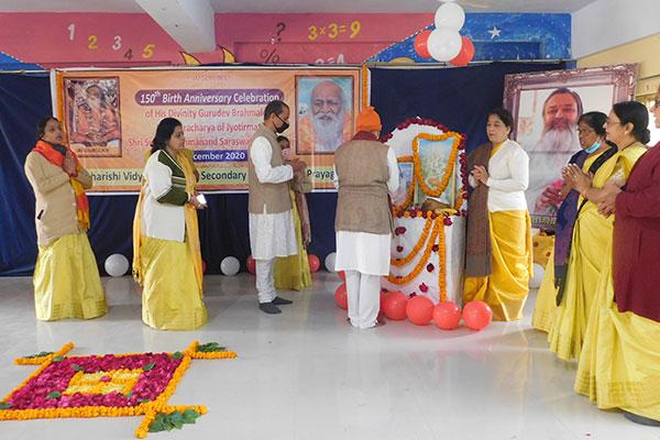 Maharshi Vidya Mandir Naini, celebrated 150th Birthday Anniversary of His Divinity Gurudev Shri Swami Brahmanand Saraswati Ji .The celebration commenced with Special Shri Guru Parampara Poojan and followed by lighting of lamp by Principal.