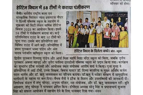 MAHARISHI VIDYA MANDIR NAINI participated for the first time in the INTACH India Heritage Quiz 2025, Prayagraj Chapter, held at DPS Naini.
