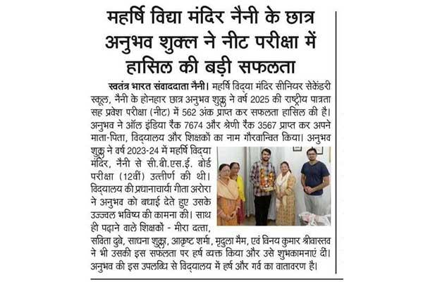 Anamika Pal, an alumna of Maharishi Vidya Mandir Senior Secondary School, Naini, Prayagraj , is making waves in filmmaking.